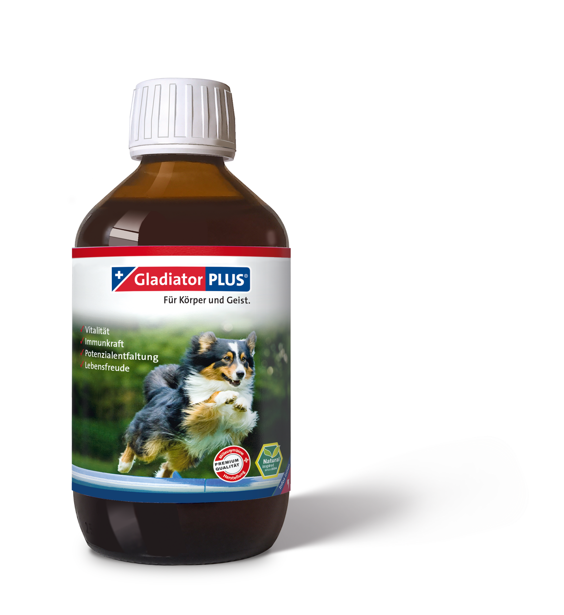 GladiatorPLUS wird über das Futter gegeben und sollte deinem Hund individuell nach Bedarf angepasst werden. Es ersetzt keinen Barfzusatz.