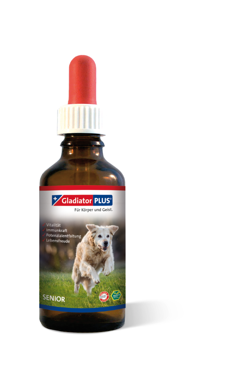 GladiatorPLUS wird über das Futter gegeben und sollte deinem Hundesenior individuell nach Bedarf angepasst werden. Es ersetzt keinen Barfzusatz.